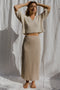 Greta is a size 8-10uk wearing our size 1 in the dulce skirt in crema and our size 2 in the dulce top in milk